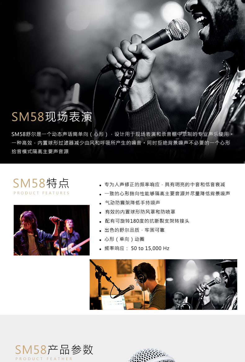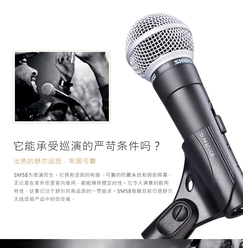產品特點 專為人聲修正的頻率響應,具有明亮的中音和低音衰減 一致的心形指向性能夠隔離主要音源并盡量降低背景噪聲 氣動防震架降低手持噪聲 有效的內置球形防風罩和防噴罩 配有可旋轉180度的抗斷裂支架轉接頭 出色的舒爾品質,牢固可靠 心形(單向)動圈 頻率響應: 50 to 15,000 Hz |